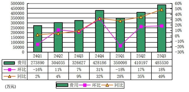 小鹏汽车2025年第三季度费用为48.55亿元,较上年同期的32.66亿元增长49%。