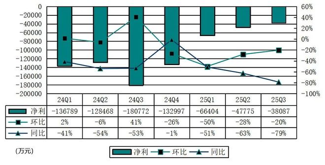 小鹏汽车2025年第三季度净亏损3.8亿元,较2025年第二季度的净亏4.8亿元缩窄1亿元,亏损缩窄得益于汽车销量提升,以及毛利率的持续改善。