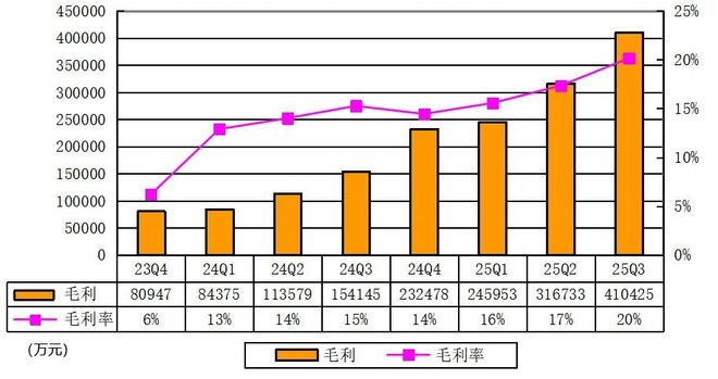 小鹏汽车2025年第三季度毛利为41亿元,毛利率为20.1%,2024年同期为15.3%,而2025年第二季度为17.3%。