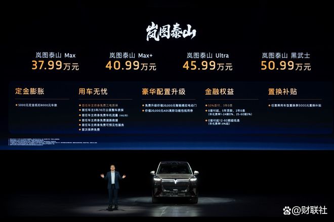 作为岚图汽车“三旗舰”之一的重磅车型,岚图泰山的产品定义始终围绕 “用户体验升级” 与 “技术突破” 双重目标;不仅如此,更是将旗舰四大件满配上车,在上述价格体系下,产品价值彰显无遗。。