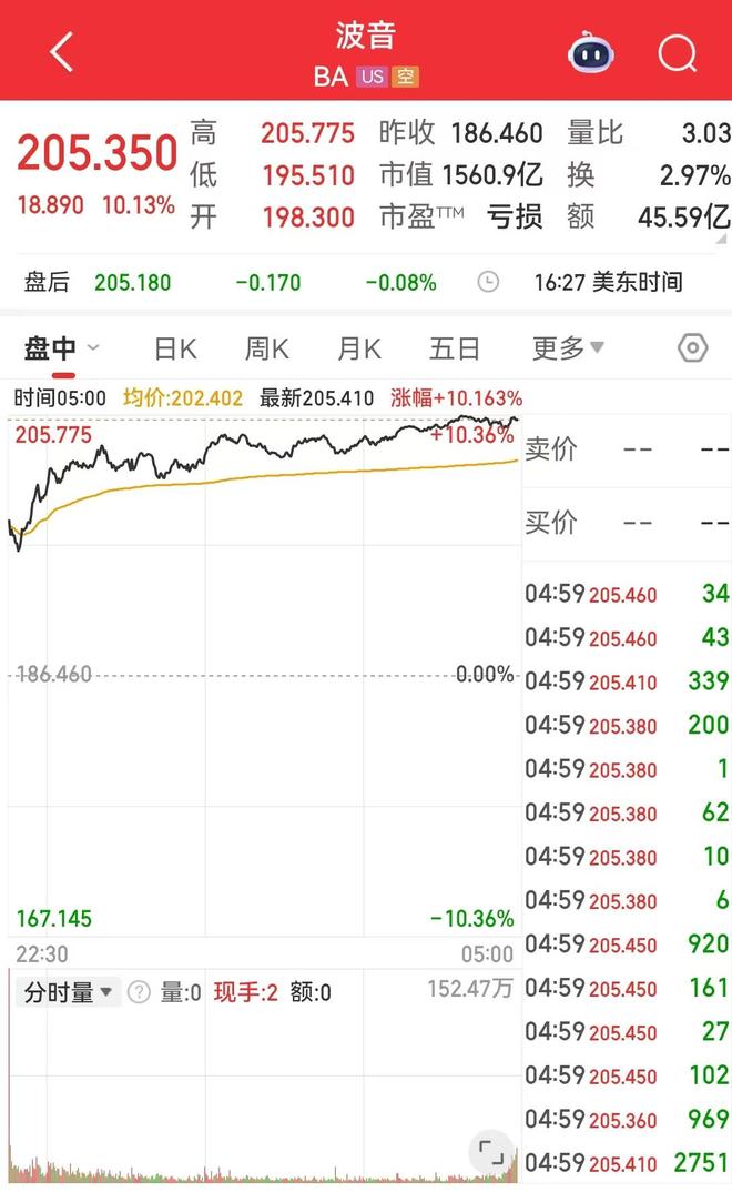 波音股价涨超10%。消息面上,波音表示,实现100亿美元的长期现金流目标具有可行性,并预计美国司法部处罚决定将推迟至2026年。