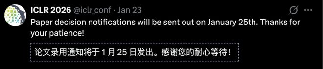 终于,ICLR 2026带来了一线希望,录用通知从1月25日发出——