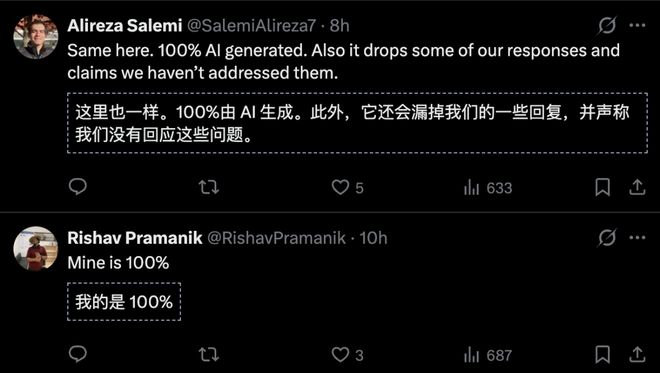 有投稿人直言,100%的评审意见全是AI生成的。