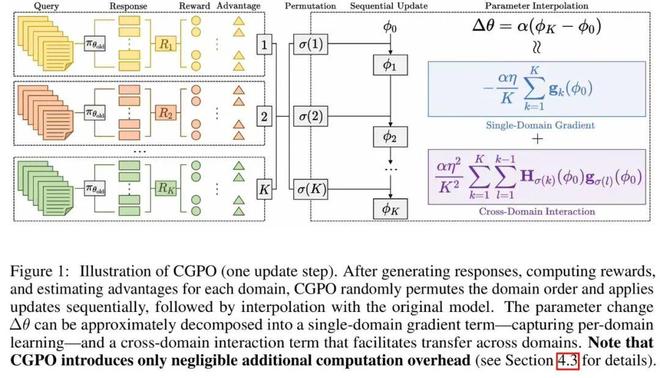多领域RL方面,他们提出了RLCGPO算法,在数学、代码、科学、创意写作4个领域的7个基准上取得平均+2.3分提升,并带来更快的奖励增长(例如训练50步后奖励提升达到基线的2–3倍);同时每步额外开销仅2–5%。