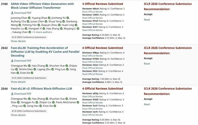 英伟达谢恩泽,参与的SANA Video和Fast dLLM系列都中了 ICLR 2026!