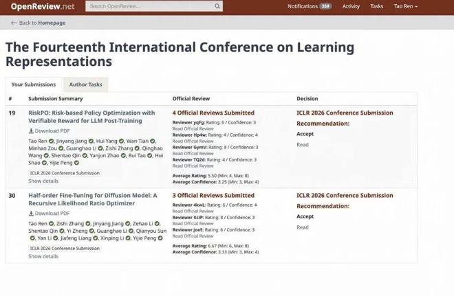 北大任韬,ICLR 2026投中两篇论文,聚焦于LLM和Diffusion的后训练强化学习算法,从风险度量和随机梯度估计的角度给出了一些不同的看法。