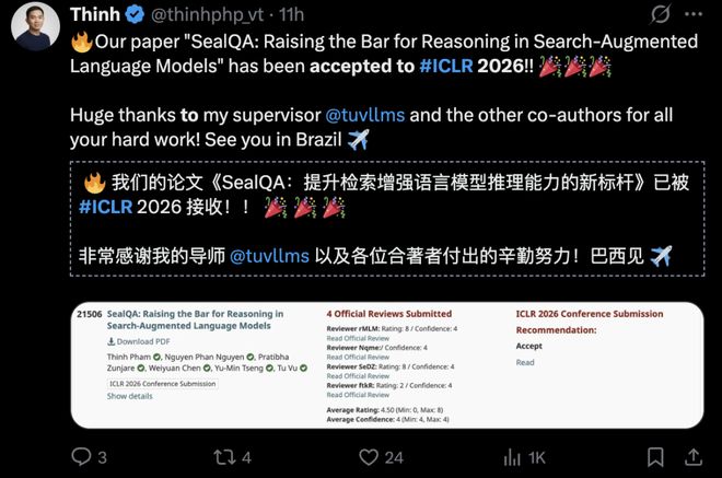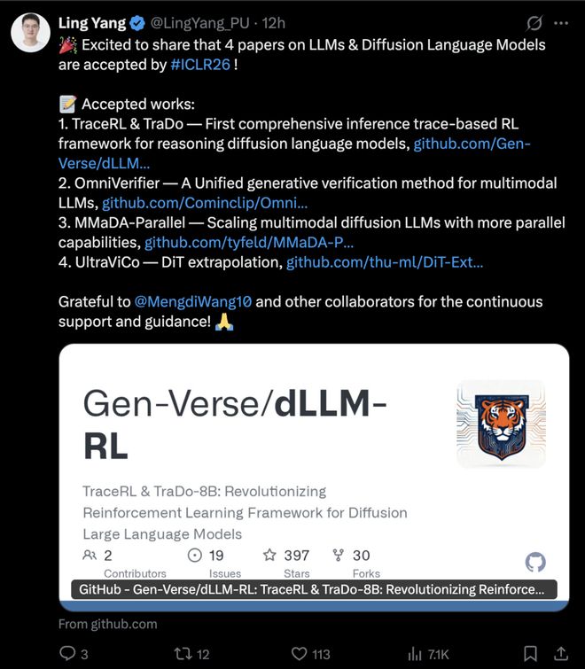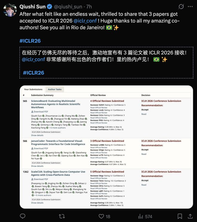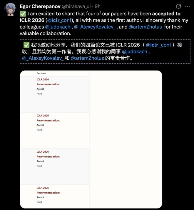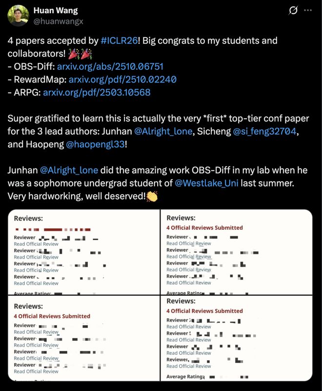 多名作者在国内外社交平台发文,祝贺ICLR 2026喜创佳绩。