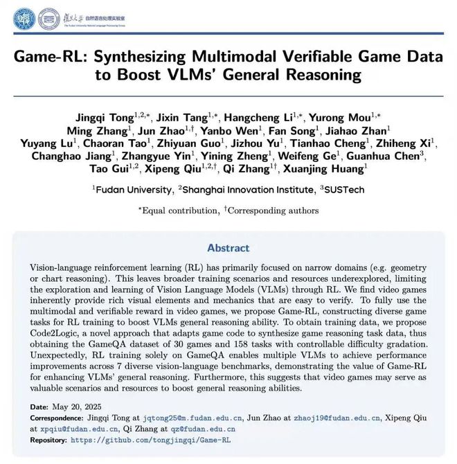 复旦仝竞奇等在被接收的工作中,发现游戏任务训练可以提升AI的通用推理能力。