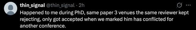 即使拿到了高分,即使多数审稿人都表示文章可以接收,只要一个审稿人就能推翻录用结果。