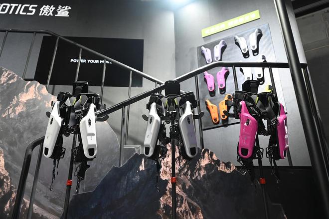 傲鲨还带来VIATRIX增程动力外骨骼机器人,专为户外场景打造。其首创Float360浮动式髋关节架构,可应对崎岖步道、陡坡等全地形。