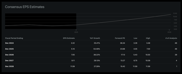 最新和即将发布的产品也正在获得热度,因为管理层表示,客户对 10 月份推出的 MI325X 非常感兴趣,目前正在扩大规模。虽然我们看到 MI325X 在与英伟达Hopper 平台(例如 H200)的竞争中表现出色,但我们认为它们仍然落后一代,因为与目前正在扩大规模的英伟达Blackwell 的竞争可能不那么顺利。