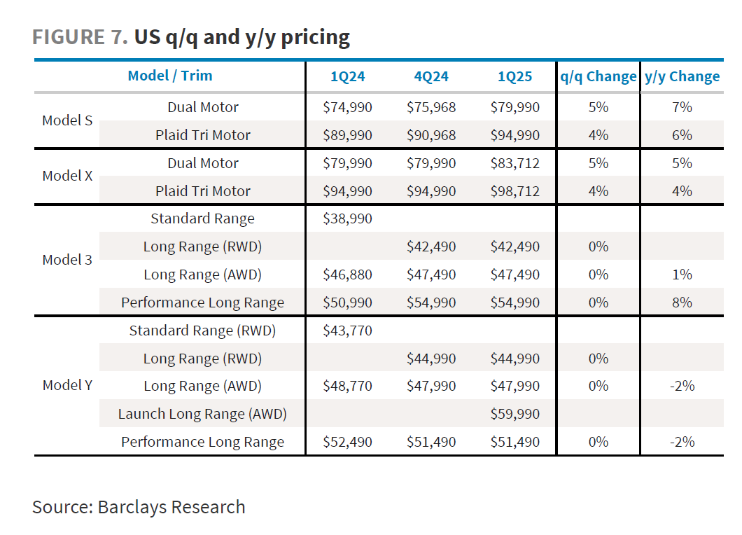 ① 对于现有车型的价格调整:Model Y Juniper上市的起售价高于旧版Model Y车型,对卖车单价有正面影响