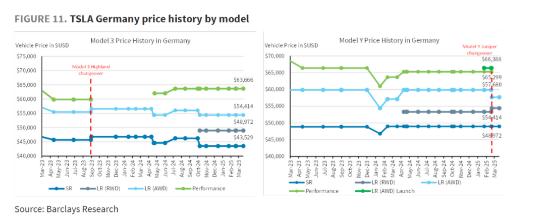 c. 欧洲地区:关税影响+Model Y换新版发布,同样对Model Y定价有所上调
