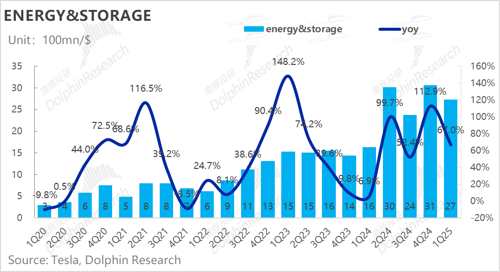 但由于美国关税不确定性对储能这块业务影响相对较大(关税对于能源业务的冲击相比汽车业务更为显著),因特斯拉从宁德时代采购LFP电池电芯,受关税影响大。虽然特斯拉正在美国调试设备进行本地生产,但现有设备仅能满足小部分需求,也在寻求非中国供应商,不过尚需时间。