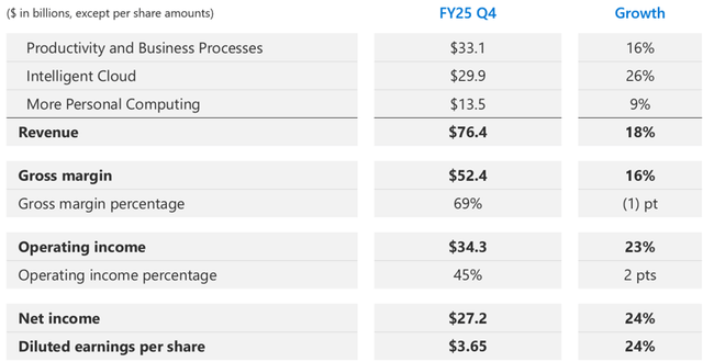 在刚刚公布的第四财季中,微软营收达到764亿美元,同比增长18%,创下多年来的最高增幅。