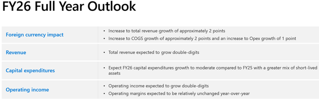 展望未来,微软预计26财年收入和营业收入将实现两位数增长,而资本支出增长预计将放缓。