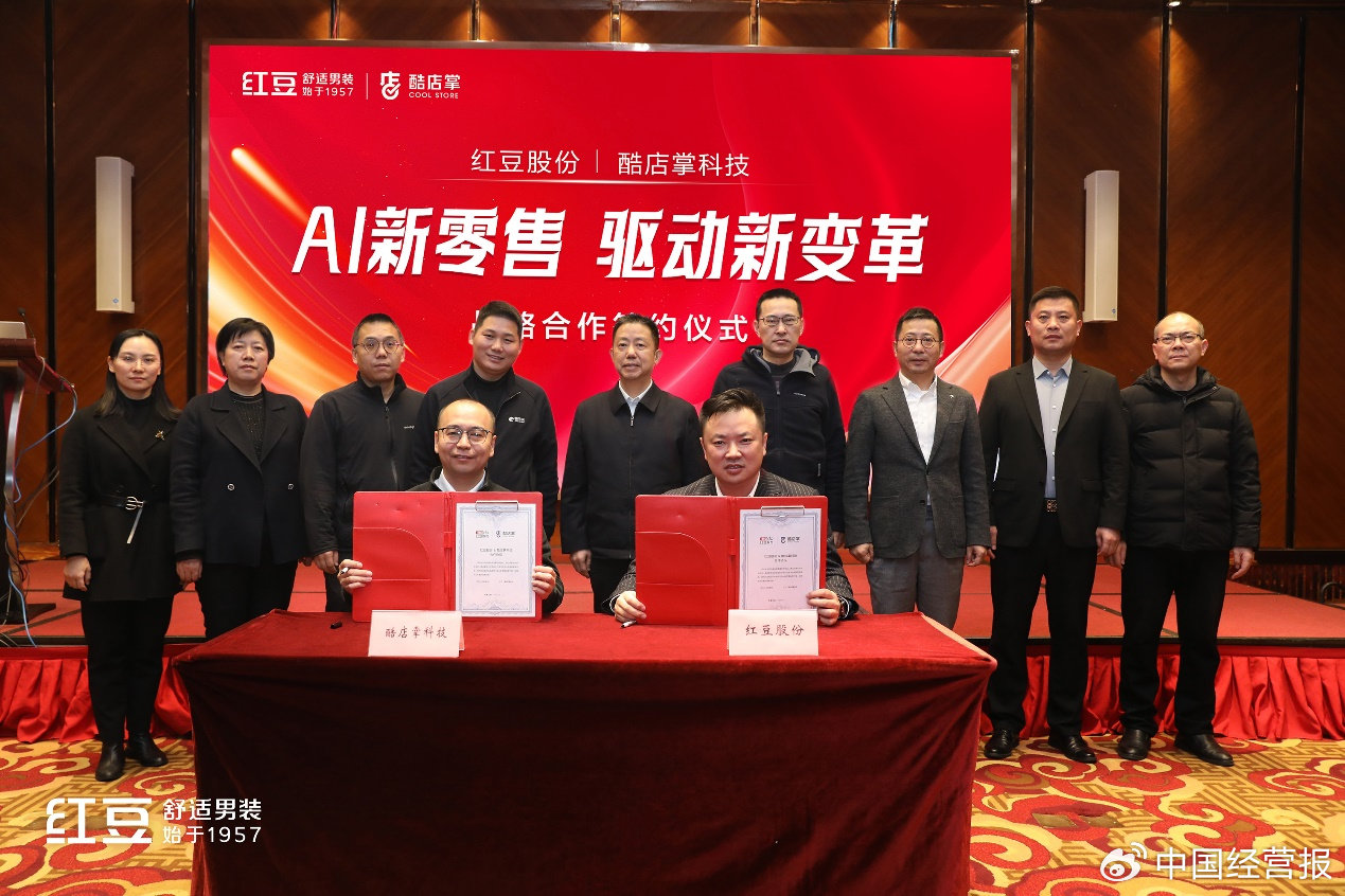 1月11日,红豆股份公司与酷店掌科技在无锡举行战略合作签约仪式,双方将共同探索基于人工智能(AI)的新零售模式,推动红豆舒适男装门店管理智能化再升级,提高红豆在AI时代之下的成本控制、用户体验升级等运营能力,在双方共创下以AI之力赋能探索新的商业模式!