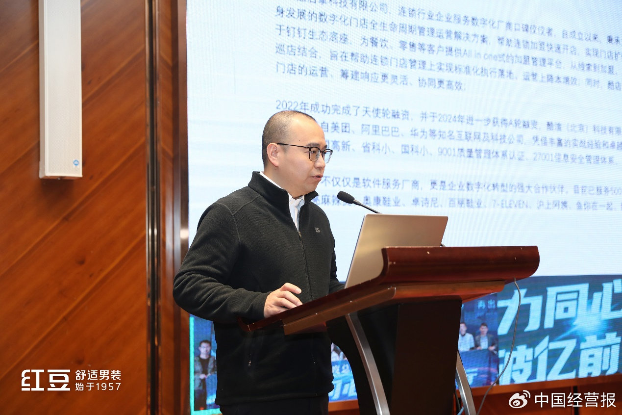 活动现场,酷店掌CEO毛爽详细介绍了公司产品及服务内容,表示对双方开展战略合作充满期待。他表示,酷店掌将为红豆舒适男装提供全方位的技术支持和解决方案,助力红豆男装实现门店管理的精细化、智能化,助力企业降本增效,为品牌智慧零售赋能加码。同时,此次战略合作,也是酷店掌在智慧零售领域的又一次突破,将对酷店掌精进完善行业解决方案、应用场景发挥有力作用。