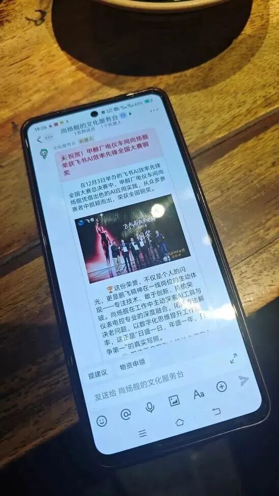 努力会被全公司看见——“2025飞书AI效率先锋全国大赛”结束一小时后,铜奖获得者、检修工尚炀舰收到了鹏飞集团全员的推送他获得全国铜奖的喜报。一觉醒来,公司连夜为其定制了“智能工匠”的专属飞书头像框。