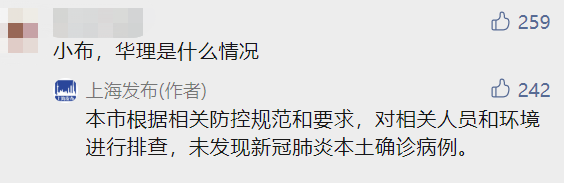 对此,上海发布进行回应称,本市根据相关防控规范和要求,对相关人员和环境进行排查,未发现新冠肺炎本土确诊病例。