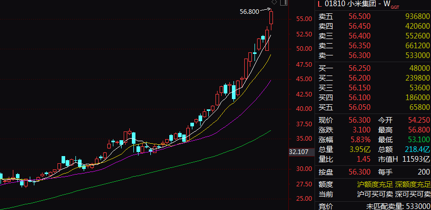2月26日,小米集团股价涨超5%,股价再创新高,市值突破1.4万亿港元。