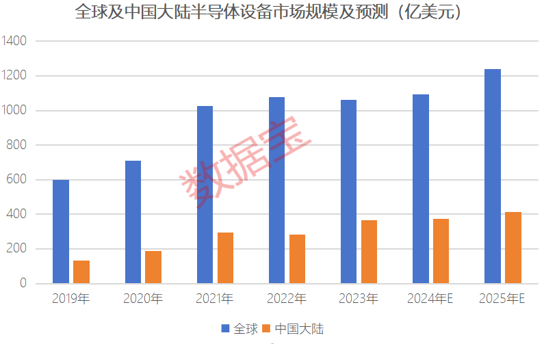根据头豹研究院数据,全球半导体设备市场规模由2019年的近600亿美元增长至2023年的1060亿美元以上,预计2025年有望达到1240亿美元;中国大陆市场半导体设备市场规模由2019年的135亿美元增长至2023年的367亿美元,预计2025年有望超过410亿美元。