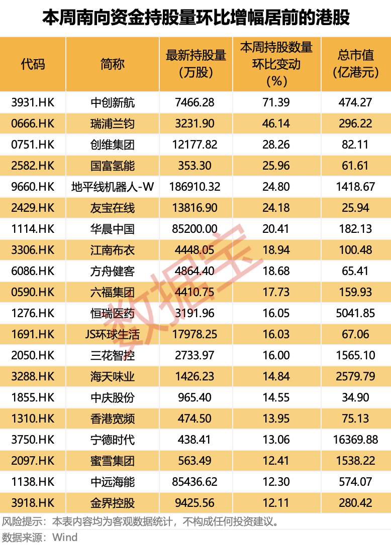 南向资金一周