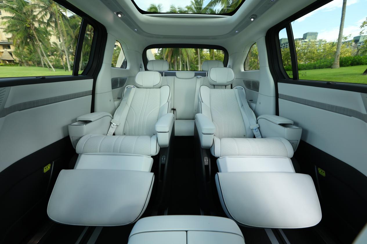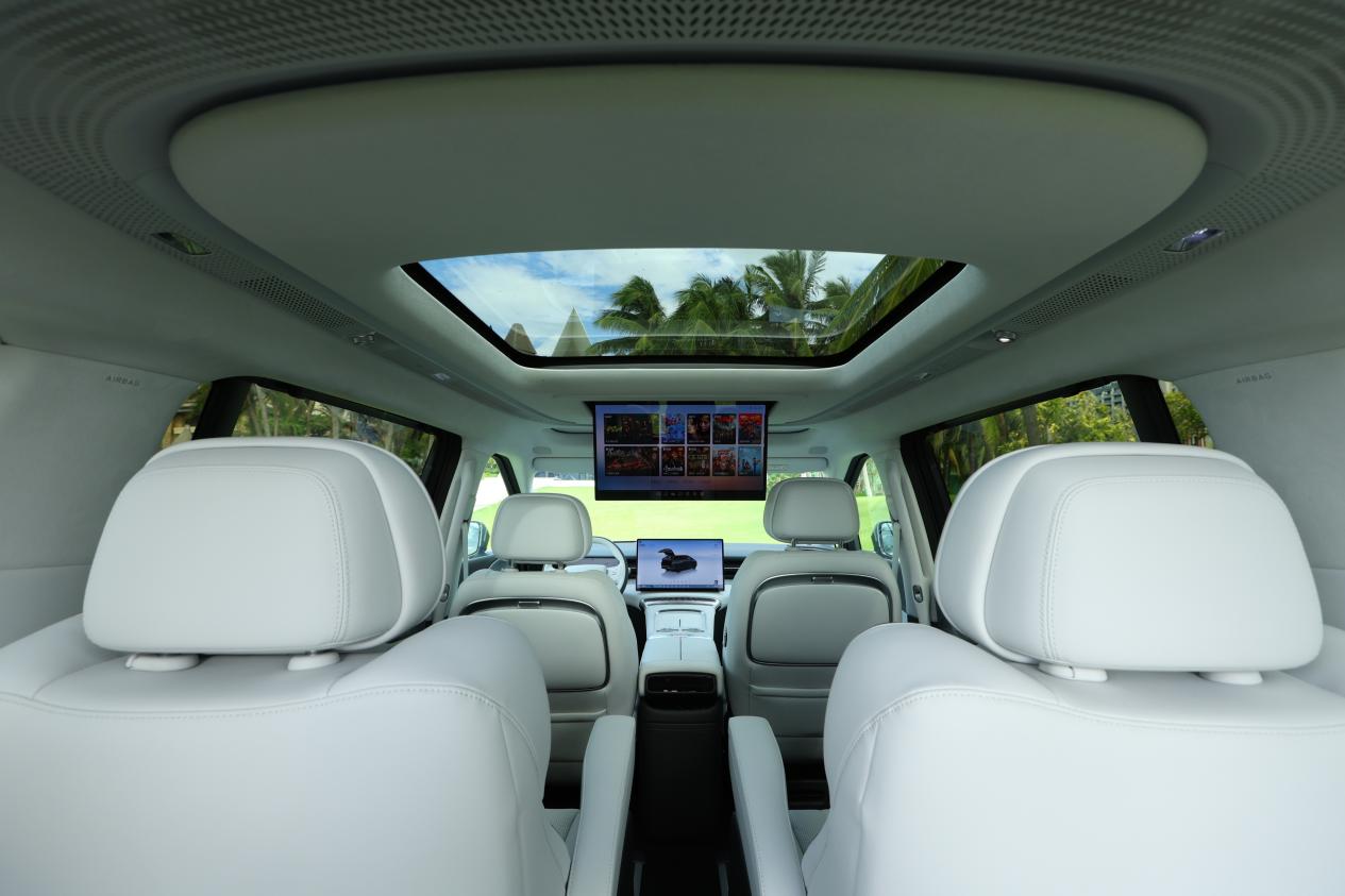 整车拥有同级最宽180mm中央过道、1360mm内部净高,营造出“人人都是C位”的乘坐环境。空间维度之外,舒适氛围同样出色:RNC主动降噪系统、6㎡双层隔音玻璃、27颗HiFi扬声器、静感柔风中央空调、可调色温航空阅读灯等一应俱全,配合可语音控制的娱乐屏与座椅调整系统,形成真正沉浸式移动客厅。