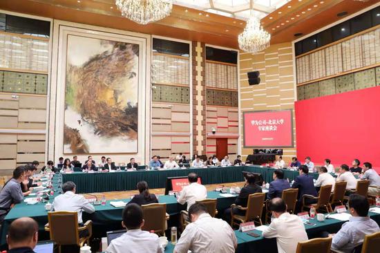 双方在北京大学英杰交流中心阳光厅举行专家座谈会。华为技术有限公司董事、战略研究院院长徐文伟,中央研究院总裁查钧,北京大学常务副校长詹启敏、龚旗煌,副校长张平文、黄如,校长助理、秘书长孙庆伟,北大相关职能部门和院系负责人、专家学者代表和华为技术有限公司相关部门负责人参加座谈会。座谈会由张平文主持。