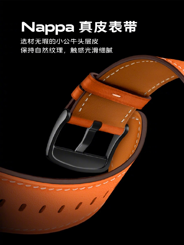 表带方面,vivo Watch手表有两种选择——Nappa真皮表带及Fluoroelastomer氟橡胶表带,前者比较高端,柔软轻薄,舒适透气,后者色彩丰富,耐腐蚀。