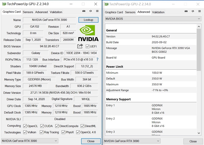 由于此次NVIDIA并未提供公版的RTX 3090 Founder Edition,我们拿规格与之完全一致的影驰RTX 3090金属大师来进行测试。