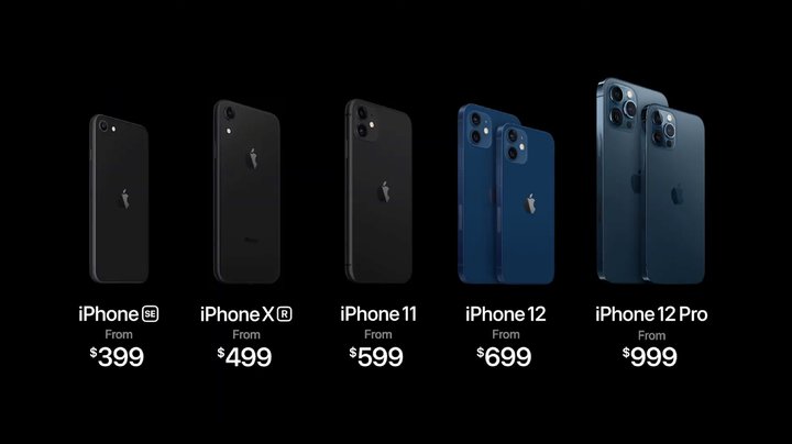 最后说下 iPhone 12 的定价。4 款机型,其中 12 Pro 系列维持了和去年一样的 999 美元起步价,但由于起步容量从 64GB 变成了 128GB,可以看作是一次‘加量不加价’。