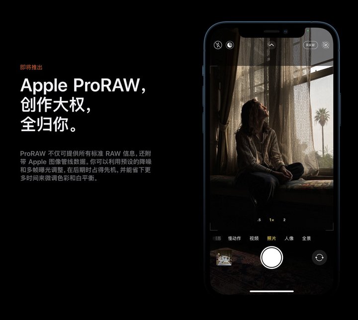 最后一项是 Apple ProRaw,这是 Pro 版 iPhone 专属的功能,其实就是让用户获得输出 Raw 格式照片的机会,增加后期调整的空间。该功能会在之后的 iOS 软件更新中提供。