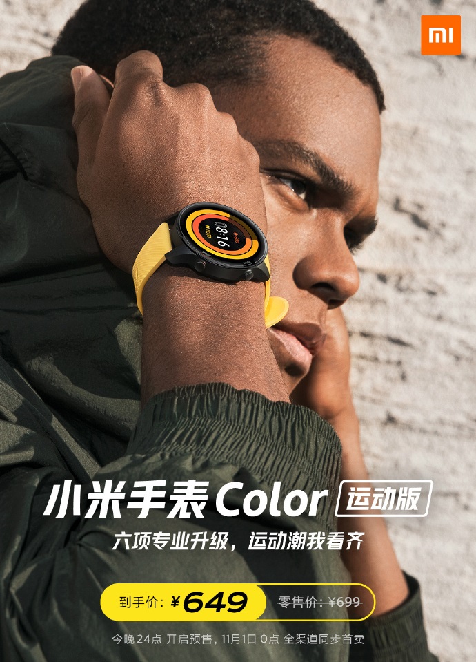 小米今天宣布推出小米手表 Color 运动版,支持血氧检测功能,售价 699 元,今晚 24 点全渠道开启预售,到手价 649 元,11 月 1 日全渠道同步开售。