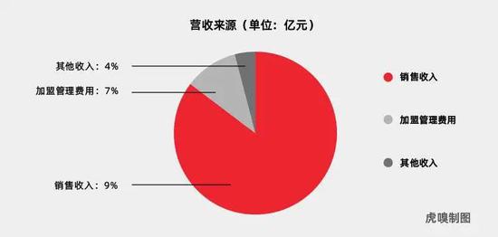 因为上述模式,名创优品的收入来源也比较集中。目前, 名创优品的主要收入来源有二:其一是来自产品的销售,包括向MINISO零售合作伙伴的销售和向分销商的销售;线下和在线渠道的销售;其二就是向加盟商和分销商收取的授权费用和货品保证金,以及基于销售的管理咨询服务费。其中,2020财年,名创优品来自商品销售的收入为81亿元,占比89.7%;来自后者的收入为5.9亿元,占比6.6%。
