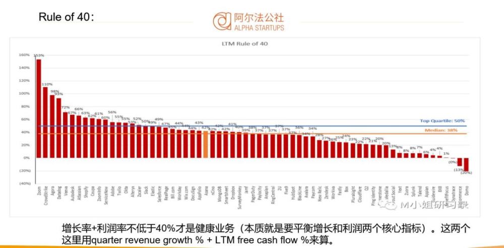 更重要的是,在SaaS行业的一个非常重要的指标Rule of 40,即增长率+利润率不低于40%才是健康业务(本质就是要平衡增长和利润两个核心指标)。它达到了93%,与Zoom,Snowflake等头部玩家在同一水平线。
