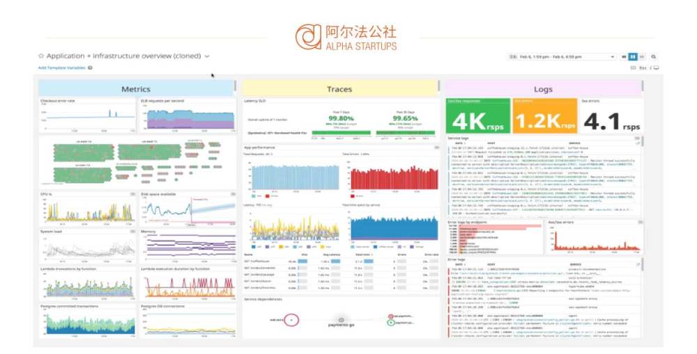Olivier Pomel(以下简称Olivier):它到底是什么?举例来说,每当你在网上看一部电影,或者在商店里买东西的时候,在后端有数万台服务器和应用程序以及各种不同的东西参与其中,我们所做的实际上是对所有这些机器、应用程序进行测量,捕捉所有的事件—来自这些机器和应用程序的输出,告诉你他们在做什么,他们是如何做的,客户在做什么。我们将所有这些信息整合在一起,帮助需要了解这些信息的人理解正在发生的事情:它是否真实发生,是否以正确的速度发生,是否还在发生,随着时间的推移谁在流失。因此,我们基本上帮助团队(无论是工程、运营、产品还是业务团队)实时了解这些应用对其业务的作用。