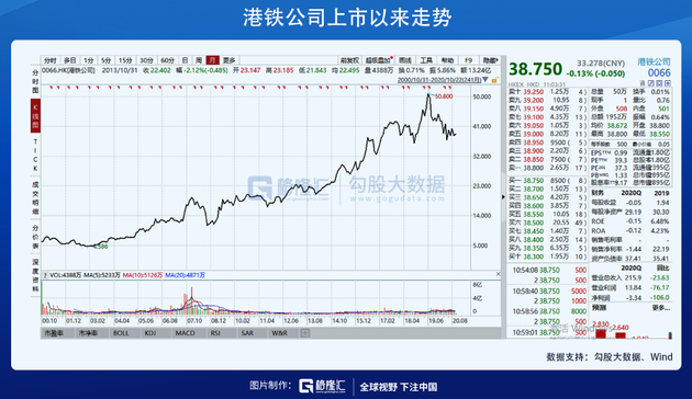 我们看一下八达通母公司——港铁公司——的上市以来股价走势。