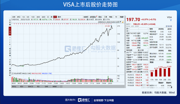毫无疑问,最对标的无疑是2008年3月美国上市的全球支付巨头——VISA。