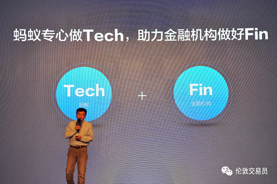 于是,蚂蚁同年在北京宣布,"未来会只做Tech(科技),支持金融机构去做好Fin(金融)"。