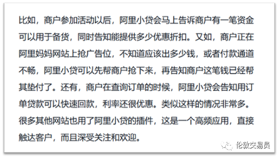 而现在蚂蚁的微贷业务能够蓬勃发展,说明小企业/消费者一直都有着强烈的小额贷款需求,只是过去银行没能满足这个需求。
