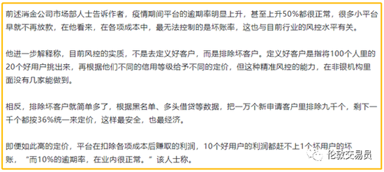 而没有资金优势的互联网助贷平台的情况则还要更糟,即使他们按36%的利率上限放贷出去,最终利润空间还不到2%。而且,一旦不良率出现波动,这部分利润还需要吐出来。