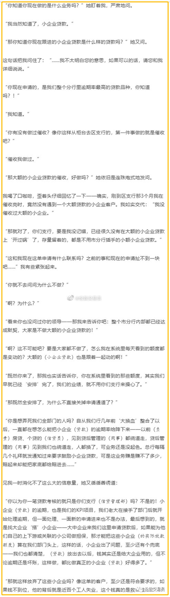 图:截自网易人间<我们银行,早就不做大额小企业贷款了>