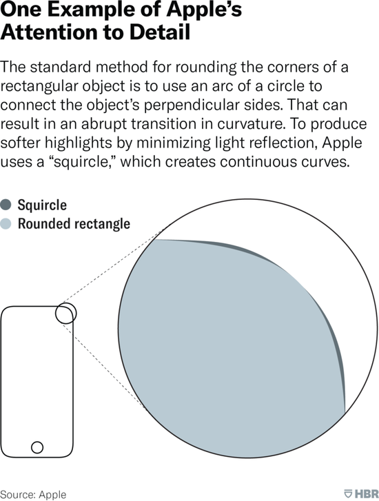 当然,许多公司的领导人坚持说,他们和他们的团队都深谙细节。但很少有机构能与苹果媲美,想想它的高层领导是如何对产品圆角的确切形状给予极大关注的。
