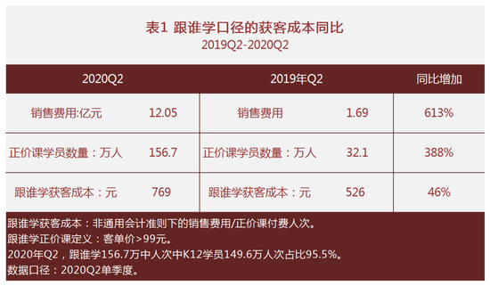为了足够精确,我们尝试从单一学员角度试算2020年暑期在线教育头部各家的获客成本。