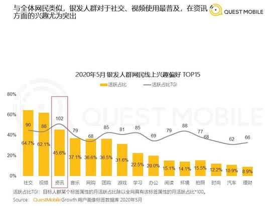 数据上也显示,银发人群对于社交、视频软件使用最普及,在资讯方面的兴趣尤为突出。而疫情以来,线下活动受限更多,导致越来越多的大爷大妈开始尝试电商、移动支付等应用。