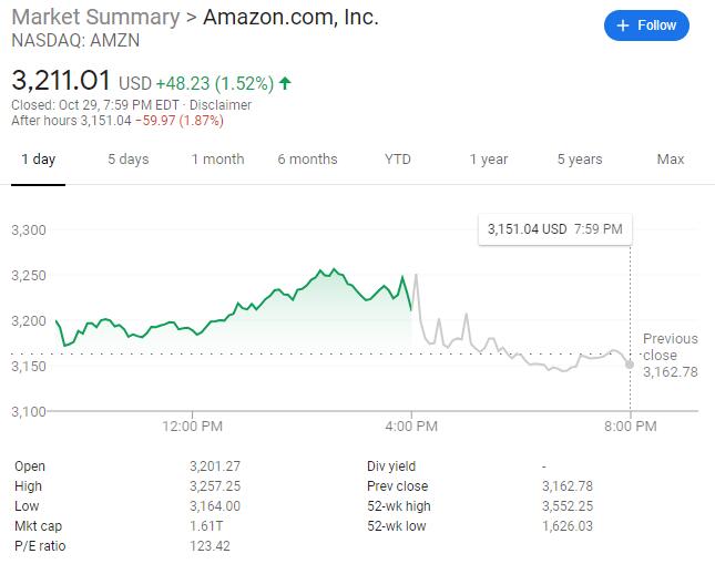 只不过三季度云业务AWS收入增速创新低,营业利润率下滑。股价盘后先涨2%,后跌1.78%。