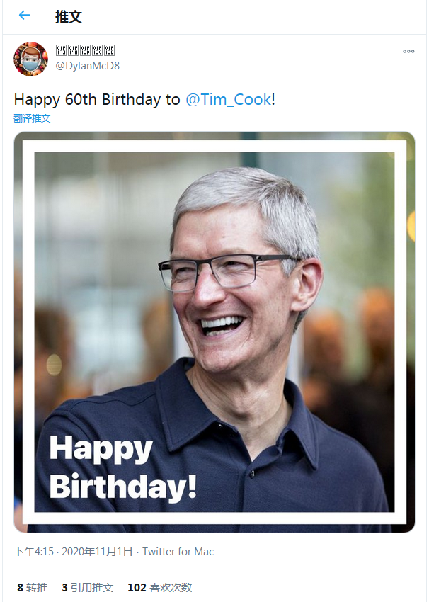 原标题:苹果首席执行官蒂姆·库克:60岁生日快乐 来源:cnBeta.COM