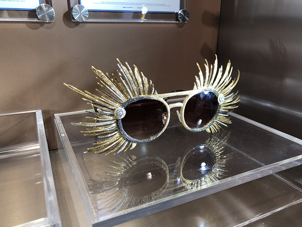 创吉尼斯世界纪录的“镶嵌最多钻石太阳眼镜” 本文图片均为澎湃新闻记者 李菁 图