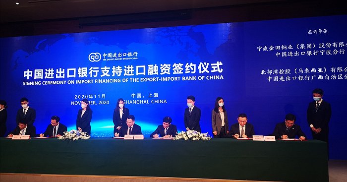 11月6日,中国进出口银行在上海举行支持进口融资签约仪式。在签约现场,中国进出口银行宁波分行与宁波金田铜业(集团)股份有限公司(以下简称“金田铜业”)、宁波亚洲浆纸业有限公司(以下简称“亚洲浆纸业”)签署了合作协议。